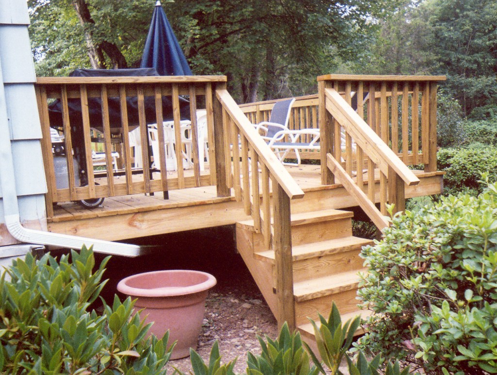 Installation of a deck attached to back of the house. This deck has stairs leading to backyard from home’s living room.