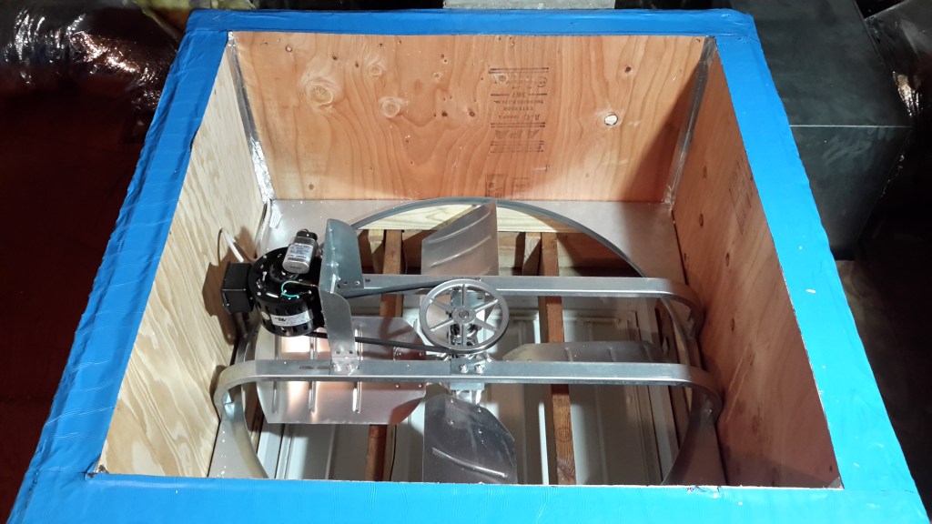 Finished basement main view with ceiling tiles and sheet-rock to conceal ducking vents.