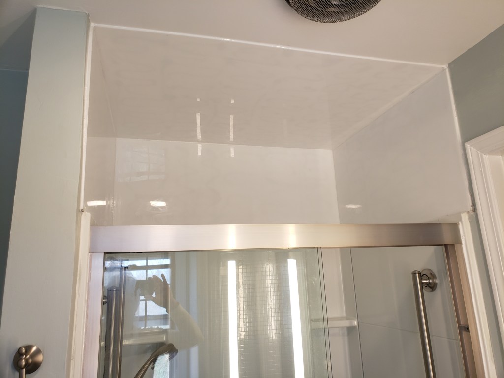 Half-bathroom Remodeling.Shower with slider and acrylic surround up to the ceiling.Shallow vanity and ten-inch rough in toilet (pressure flushing mechanism).New tub, fixtures and surround walls.