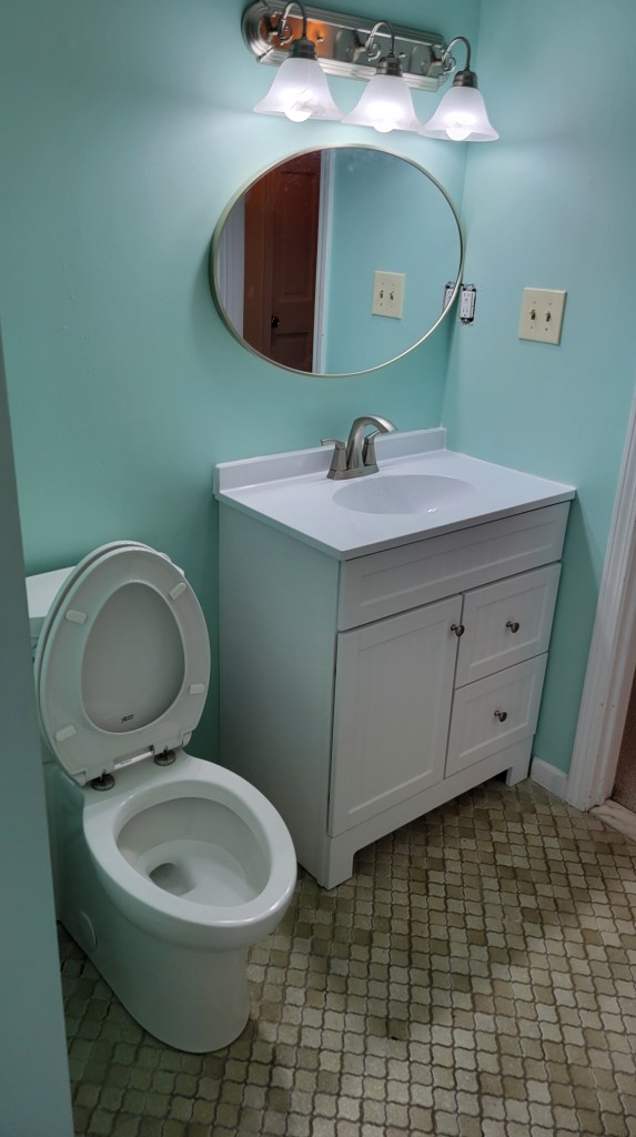 Partial Bathroom Remodeling: Toilet, vanity, mirror and light.